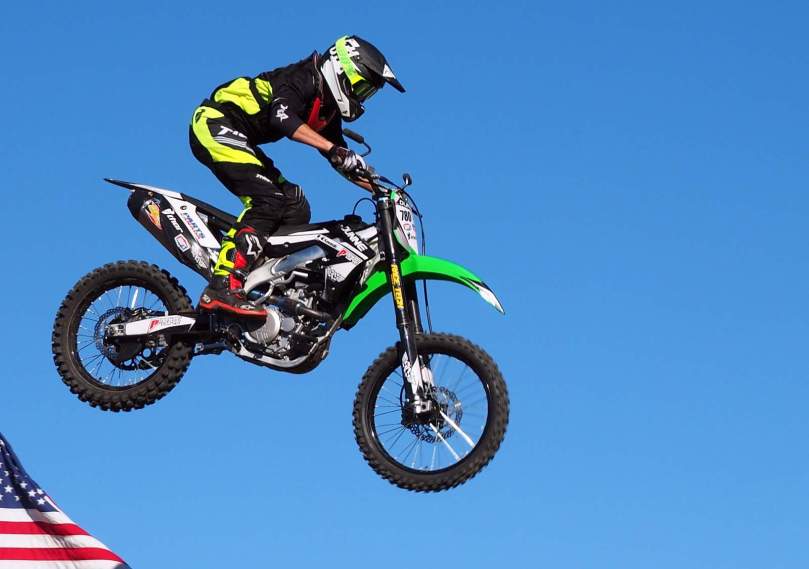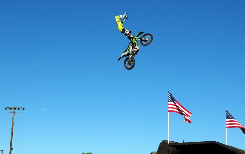 Damit wir dann die angekündigte größte Sensation „überhaupt“ bewundern können, fliegen zwei wahnsinnige Spezialisten mit ihren Motorbykes gekonnt durch die Luft.
