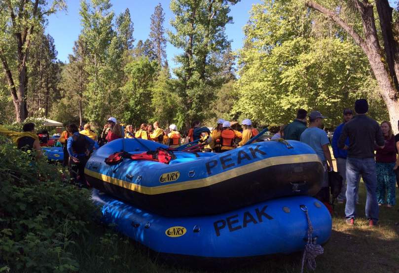 Es ist richtig viel los hier. Zum Wochenende wollen wohl so ziemlich alle jungen Leute aus der Umgebung mit den großen Schlauchbooten aufs Wasser, deshalb ist der Platz eine einzige Ansammlung von jugendlichen Schwimmwesten, die ihre Unterweisung vor dem Start entgegen nehmen.