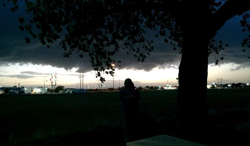 Es wird auf jeden Fall ein heftiges Gewitter mit starkem Regen erwartet. Eventuell kann sich aus diesem Wolkenbild heraus aber auch ein Tornado bilden.