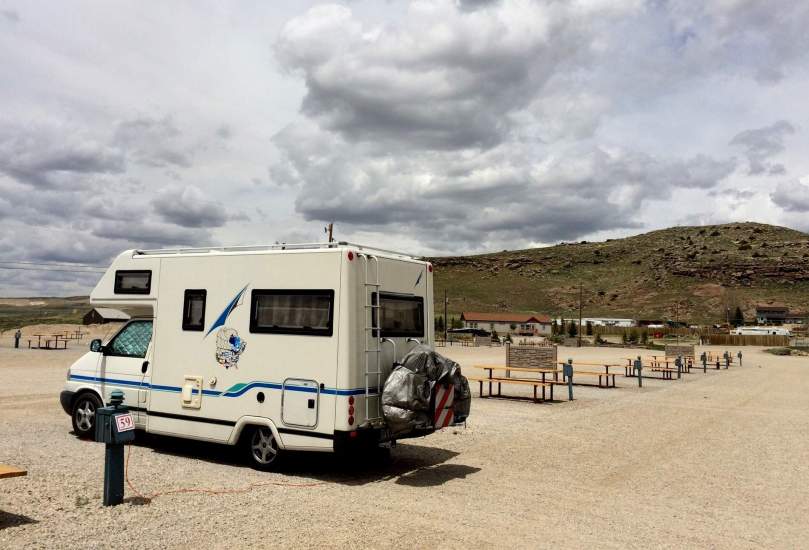 Der Parkplatz des Supermarktes in Rock Springs erscheint dafür nicht nur uns gut zu gefallen, sondern bestimmt noch 10 weiteren Reisenden mit ihren Mobilen.