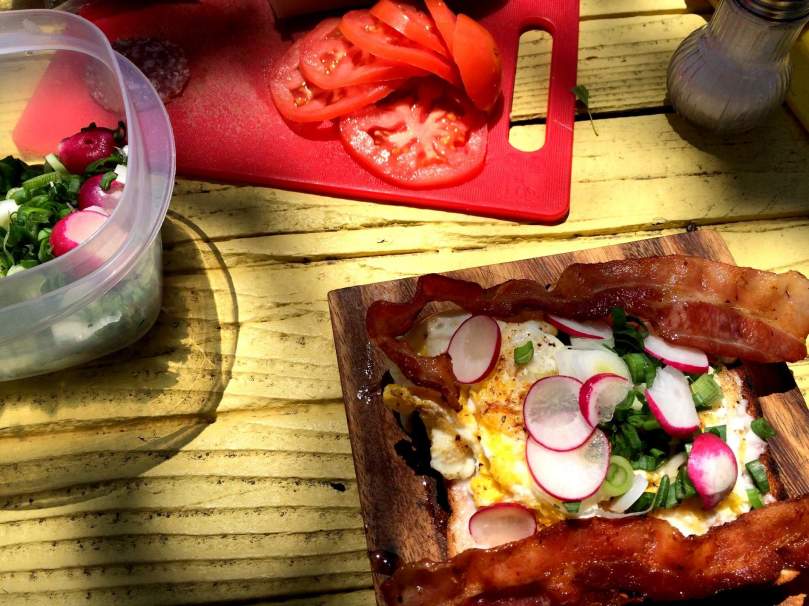 Wir bekommen Radieschen und Frühlingszwiebeln aus dem Garten geschenkt