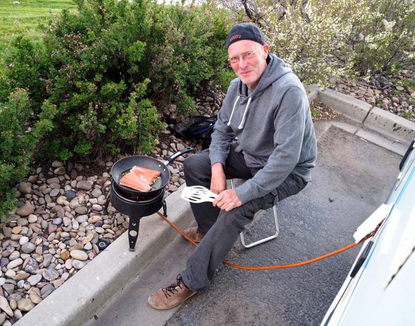 Wir haben uns in einer fast lauschig zu nennenden Ecke einquartiert, können sogar ungesehen unser Abendessen braten!