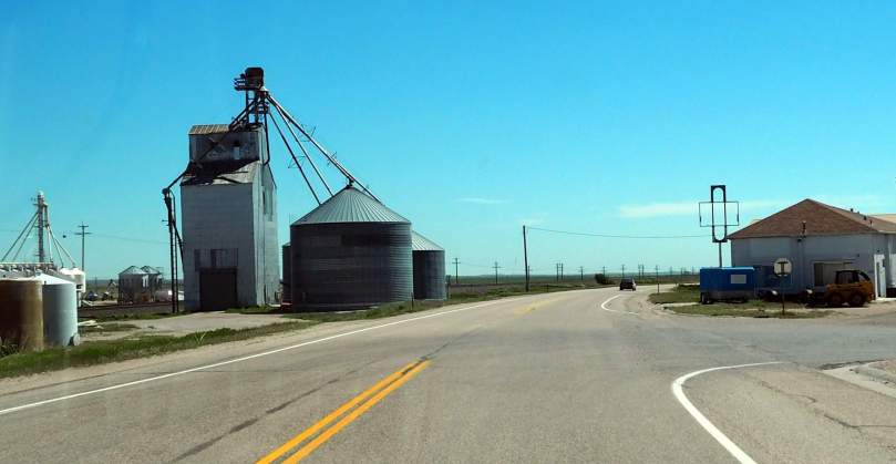 Abwechslung bieten die kleinen Orte. Viel Landwirtschaft gibt’s jetzt hier, davon legen die riesigen Getreide- und Maissilos beredt Zeugnis ab.