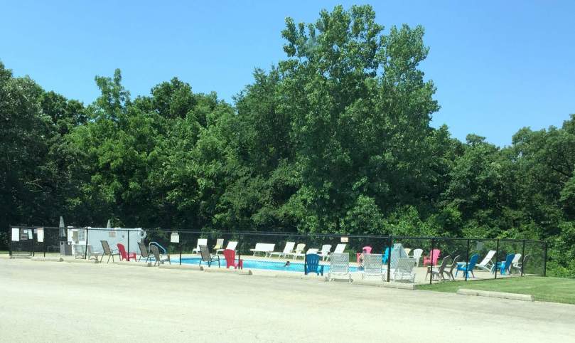„Hickory Hollow RV Resort“ in LaSalle, Illinois, wo wir uns für heute einmieten, wirkt als eine versteckte Schönheit mit herrlichem Pool, in dem wir zum ersten Mal in unserem Leben mit fünfjährigen Drillingen zusammen baden.