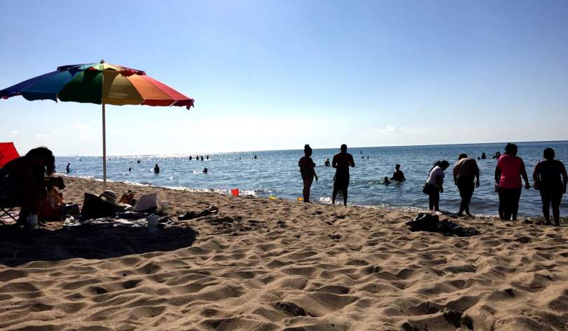 Das Schönste nach der Fahrt ist es Schwimmen zu gehen! Wenn dann auch noch der Strand mit anliegendem Michigan See auf dem Fahrrad innerhalb von 5 Minuten zu erreichen ist und die Sonne lockt, dann ist das wie ein Sechser mit Zusatzzahl im Lotto!