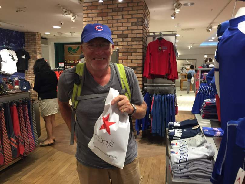 das Visitorcenter ist nicht mehr da, wo es uns im Reiseführer beschrieben wurde, aber, ich habe gezählt, nach fünfmaligem Fragen stehen wir im Untergeschoss von Macy’s, zwei Blocks weiter in die Randolph hinein (schnell noch ’ne passende „Chicago Cups“-Cap gekauft) vor dem Tresen und lassen uns die beste Bootstour zur Entdeckung Chicagos erklären.