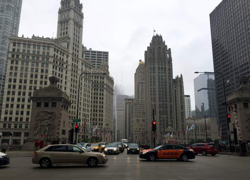 Unter den höhenknappen Brücken hindurch bekommen wir Chicago Downtown aus unmittelbarer Perspektive einmalig wirkend, geboten.