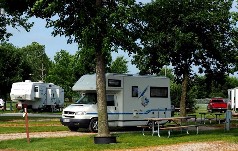 Citypark Campground, Kalona, Iowa ist dann unser preisgünstiger städtischer Übernachtungsplatz direkt am Freibad, dass heute, weil Samstag, richtig, richtig voll ist. Kein Platz zum Schwimmen. Das lassen wir lieber.