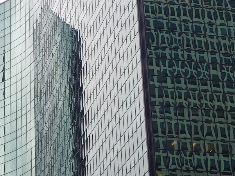 Die Kästen sind sowas von dicht nebeneinander gesetzt und gleichzeitig hoch, dass es uns fast den Atem verschlägt und bei diesem etwas regnerischem Wetter ein wenig unseres Atems als Wolken- oder Nebelfetzen an den oberen der Hochhäuser hängen bleibt.