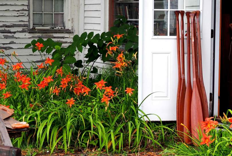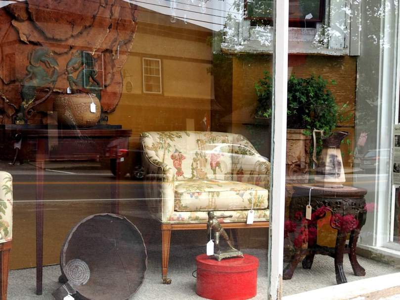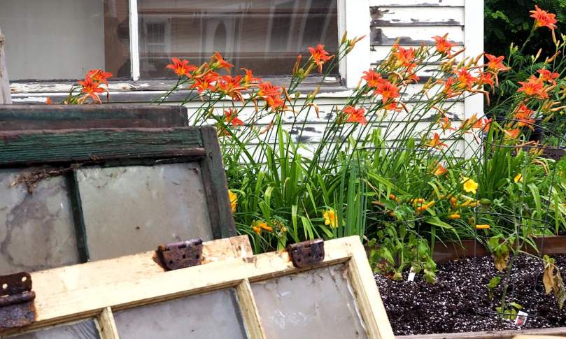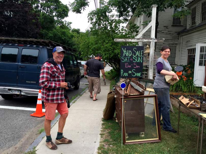 Den in den gesamten USA beliebte Yard Sale, also der private Trödelmarkt ohne besondere Genehmigung, hat im Geschäft von Beatrice & Richard eine professionelle Prägung gefunden. Die Mischung aus ganz alten Werkzeugen, wirklich alten Kleidern, Gegenständen, Möbeln, Fenstern, herrlich blühenden Tigerlillies und selbst angebauten Tomaten finden wir irgendwie besonders einladend.