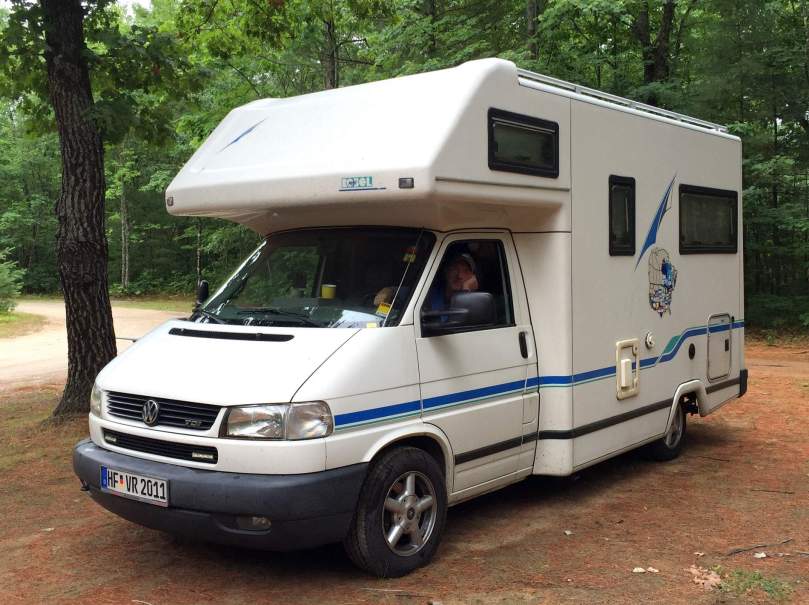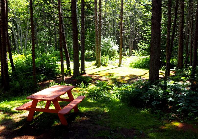 Sherwood Forest Campground, Maine empfängt uns bei strahlendem Sonnenschein mit einer gut gelaunten Runde am Office. Die Frau am Empfang hat noch einen Platz für 2 Nächte frei: „Take 23, it’s a wonderful silent site“.