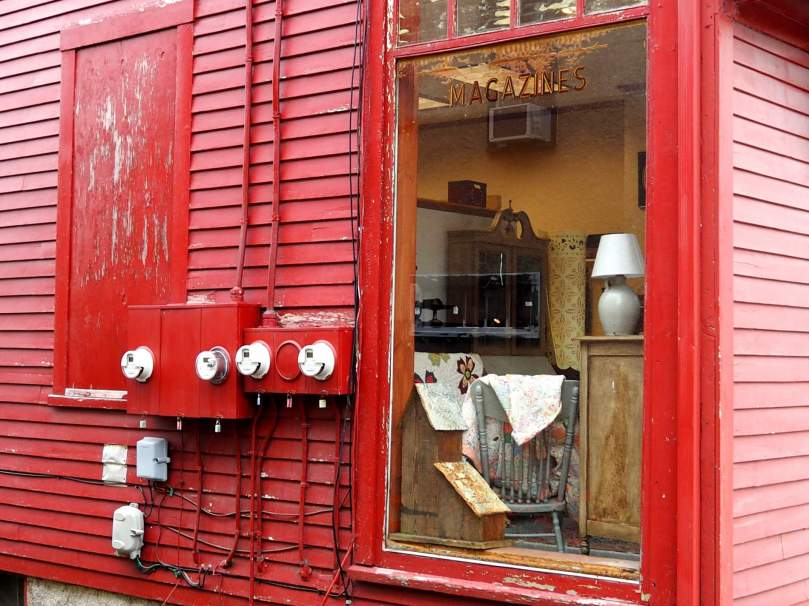 Die etwas gediegeneren Antiqueshops und einige besondere Blickfänge, wir betrachten sie mit Muße , lassen die Main Street von Cornish auf ungefähr 500 Meter Länge als „einzigartig“ erscheinen. Nicht wirklich, aber immerhin, uns erscheint sie originell zu sein…