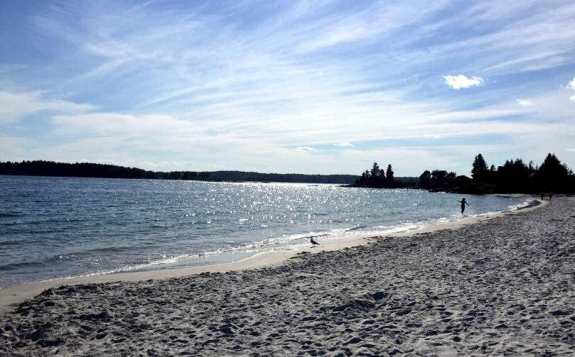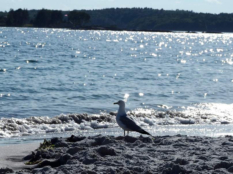 Punkt 4 pm genießen wir den inzwischen fast menschenleeren feinsandigen Strand und teilen ihn uns mit der hungrigen Möwe.