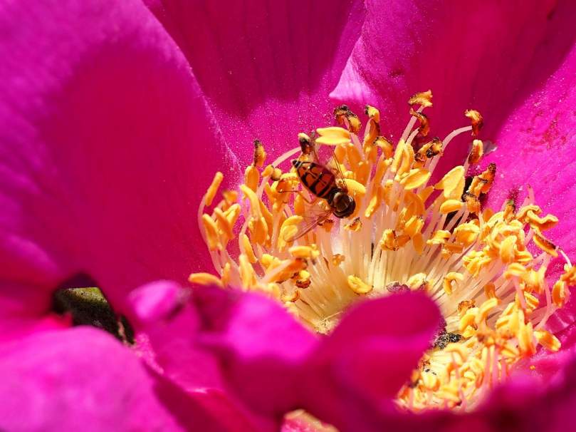 Wir mögen die gediegene Atmosphäre ringsum diese historische Stätte. Den Strandrosen geht es wahrscheinlich ähnlich: Sie fühlen sich zur verschwenderischen Blüte aufgerufen.