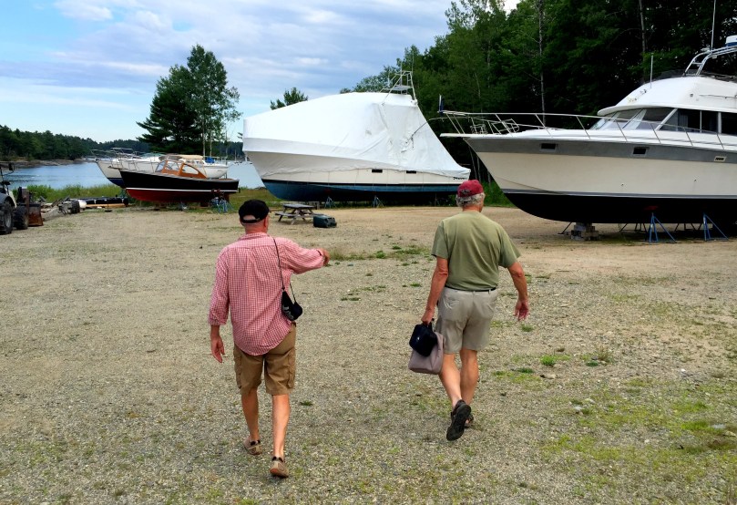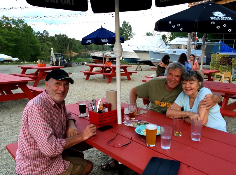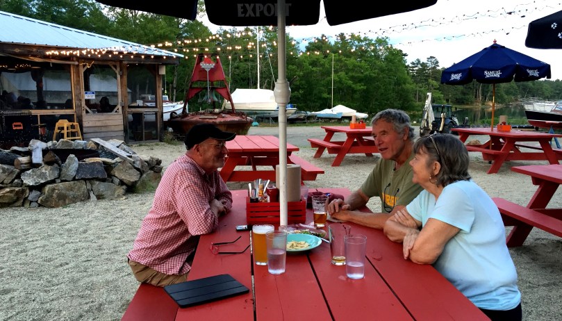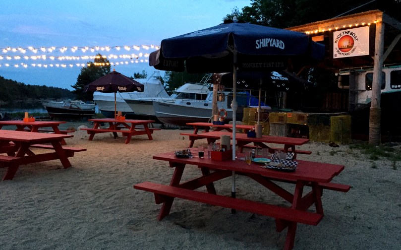…der Boulecourt am Boatyard-Grill in Blue Hill ist heute genauso tricky zu bespielen, wie ich ihn gestern zum ersten mal kennen gelernt habe. Ed hat seine fluchende Freude an ihm, so dass wir es nach einem kurzen Einspielen doch vorziehen, lieber Lobster Roll im Boat Yard Grill zu probieren und unser Bedürfnis nach „wir haben viel zu erzählen“ bei einem guten Bier stillen.