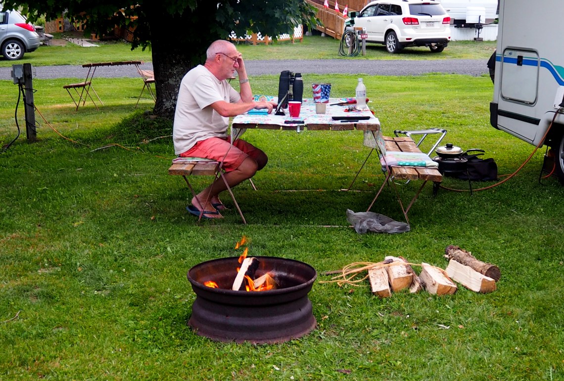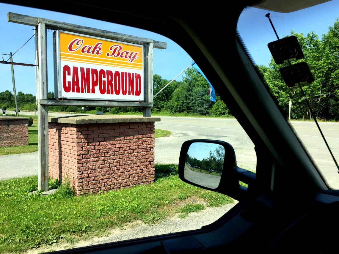 Der Oak Bay Campground, eben in Oak Bay, New Brunswick, Canada kommt uns wegen seiner Grenznähe heute nachmittag sehr entgegen, auch wenn wir innerhalb des Campgrounds noch einmal die Site wechseln müssen, weil der Strom an Nr. 10 nicht funktioniert.