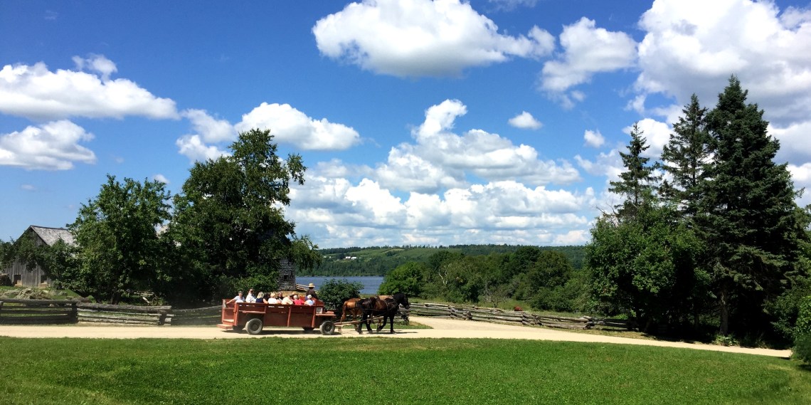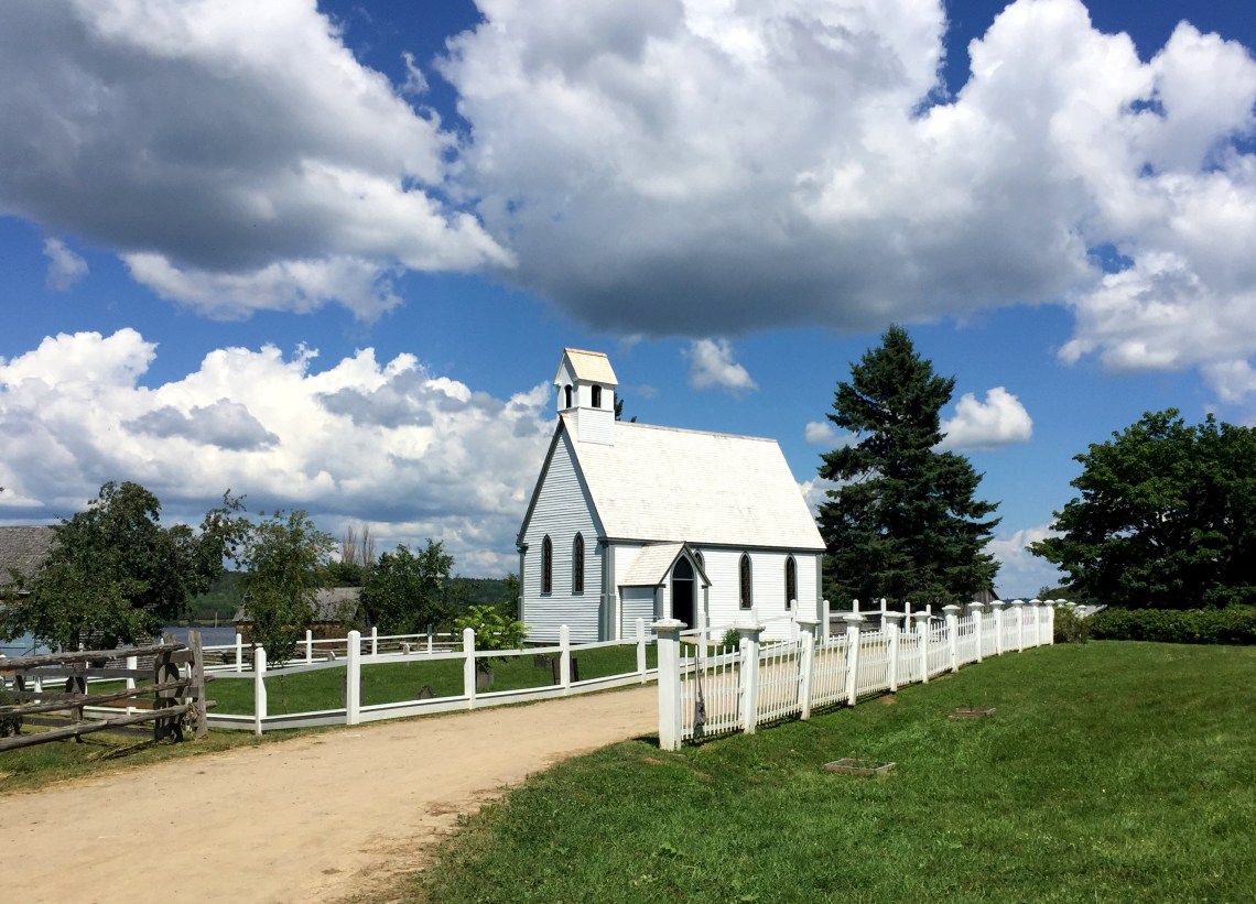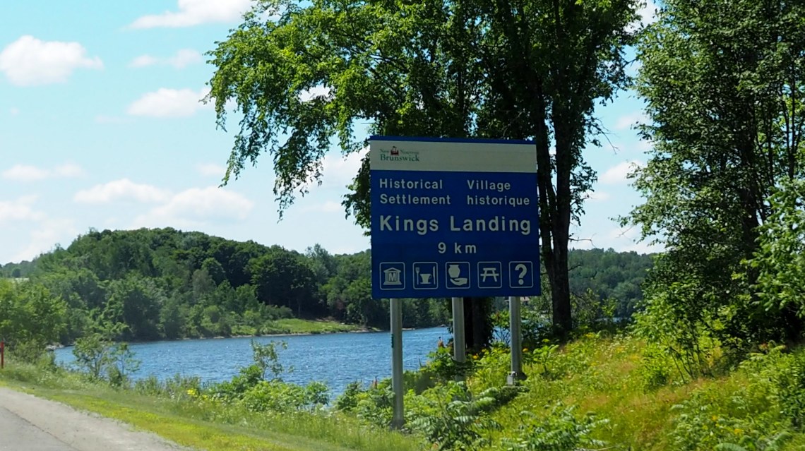 Unser nächstes Ziel, bevor wir den St. Lawrence River erreichen, liegt eigentlich gleich um die Ecke, also rein luftlinienmäßig, wenn nicht der breite Strom dazwischen läge und wir so, weil die nächste Brücke 15 km zurück liegt, ungefähr 35 km fahren müssen, bevor wir Kings Landing erreichen.
