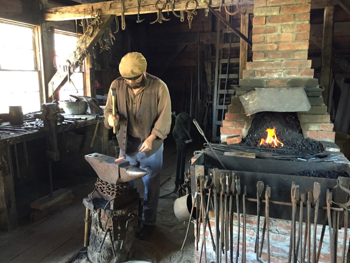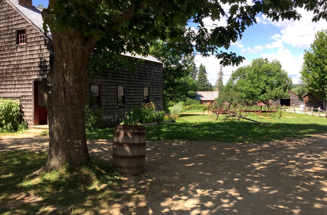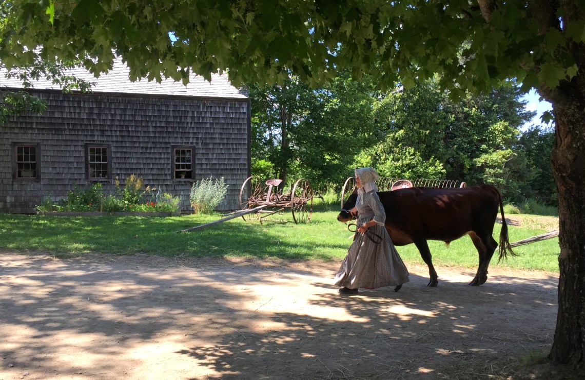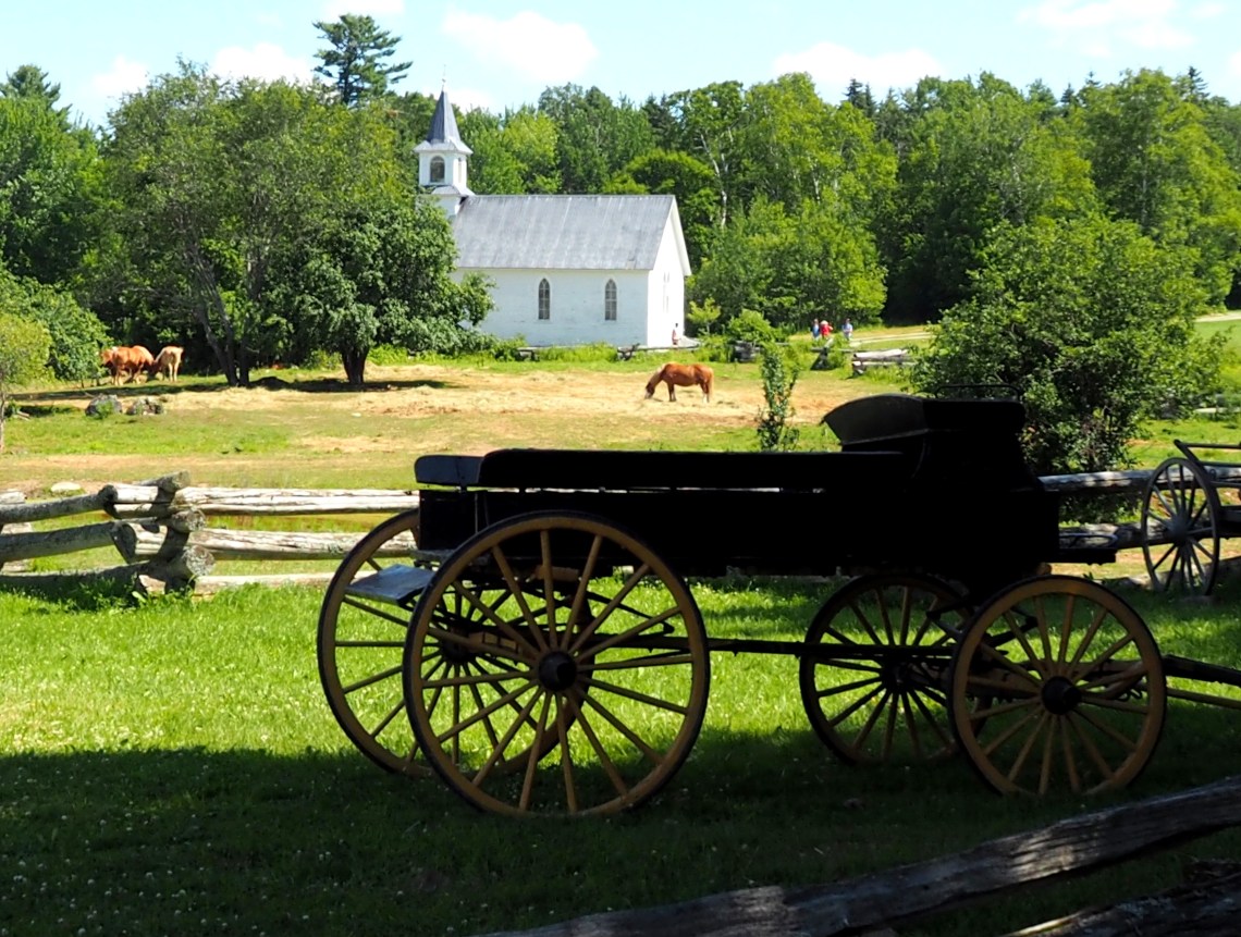 Wir erwandern uns dieses Dorf mit Schmiede, Holz- und Papiermühle, Feldern mit Corn und Getreide, Kirche, General Store und modernem Imbiss, der als Zugeständnis an die Bedürfnisse der BesucherInnen Eiscreme, Cola und modernes Junkfood anbietet.