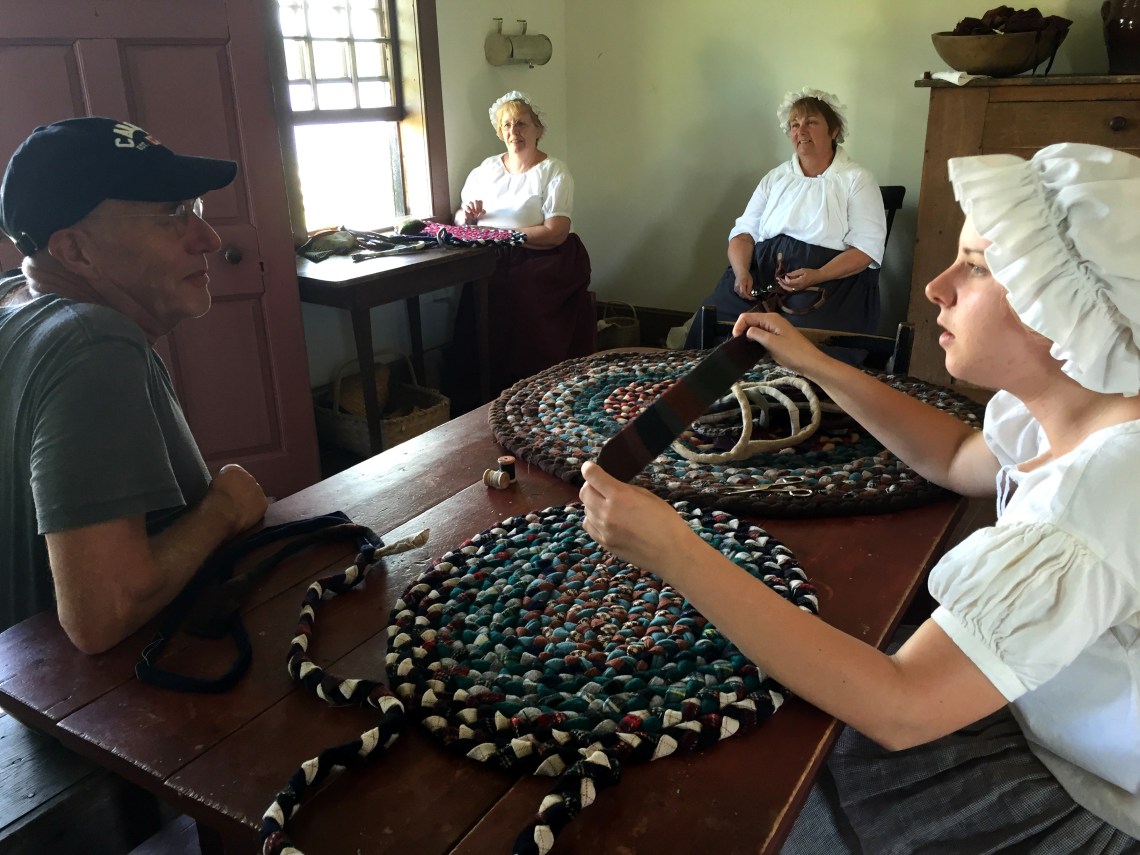 In diesem Haus arbeiten zwei Volunteers, die alle Fragen der BesucherInnen gern beantworten und die sich nebenbei mit der Herstellung von handgemachten Flickenteppichen und Quilts aus Stoffresten den Unterhalt verdienen.
