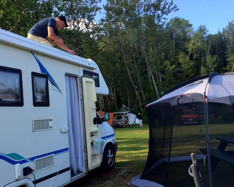 Dann sieht es auch noch danach aus, als ob ich eine der Stangen für’s Mückenzelt irgendwo vergessen hätte und ich sie durch eine notdürftige Befestigung an der Dachreling unseres WoMo’s ersetzen müsste.