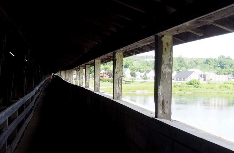 Kleine geschwungene Hwy’s bringen uns unserem nächsten Ziel, dem St. Lawrence River, näher. Dabei kommen wir sehr zufällig „an der längsten überdachten Brücke der Welt“ vorbei und kosten die Besonderheit dieses Bauwerks mit allen Sinnen und aus den verschiedensten Blickwinkeln aus.