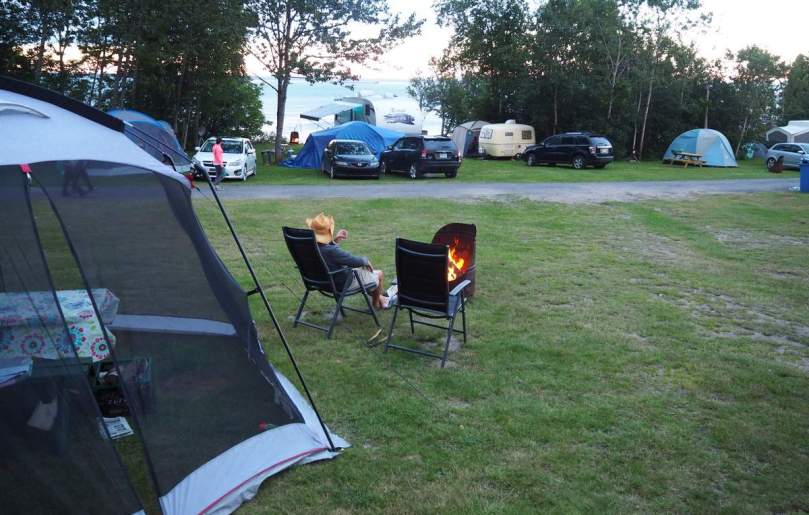 Das Holz können wir für $ 5 per Schubkarre von Gerard, dem Owner, holen. Es gibt eine alte Zeitung und ein paar dünne Scheite Starterwood dazu und der firepit, ein altes Metallfass, ist hier auch noch so zurecht geschnitten, dass das Holz ohne Probleme anfängt zu brennen.