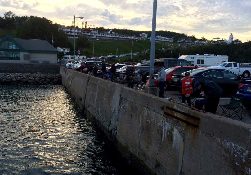 – Der Truck kommt schon am Nachmittag in den Hafen an die Stelle, wo Bernard und ich heute abend Angeln gehen, um unseren Platz zu sichern (weil abends ist hier fishing-disco). Sylvia bringt uns gegen 9:00pm dort hin , wo wir Stühle, Angeln, Würmer and other stuff auspacken und uns zum nächtlichen Angeln bereit machen…