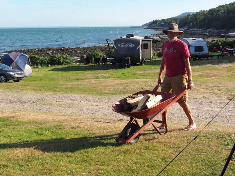 es ist ja nicht damit getan, einfach nur das Holz ranzukarren, es muss ja auch noch „perfekt-deutsch“, mit Zeitungspapier unterfüttert, so gestapelt werden, dass es mit größtmöglicher Effektivität seine Energie entfalten kann. Nach einem Jahr „Üben“ muss das schönste campfire des Platzes ja wohl jetzt drin sein… *lol*