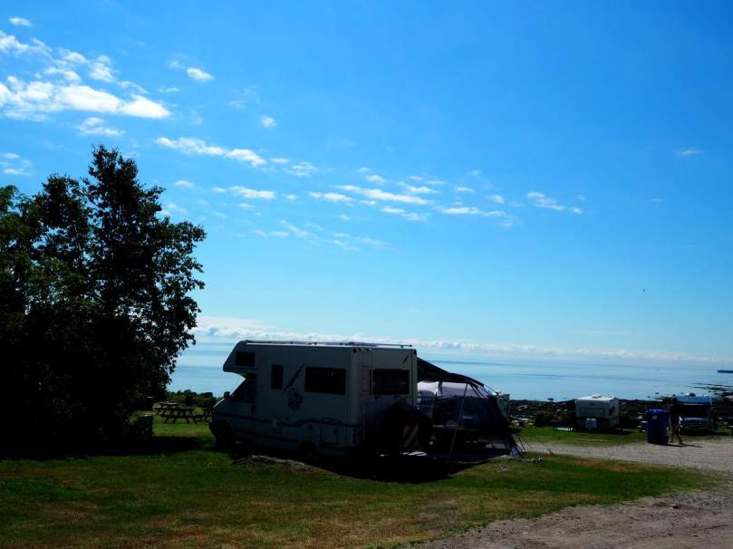 Sylvia und Bernard haben eindeutig die Site Nr. one auf dem Campground, was meint, die schönste Stelle direkt am Strom, ohne dass Sie von anderen Menschen überhaupt gesehen werden können. Sie leben jedes Jahr für vier Monate in ihrem Trailer hier direkt am Beach.