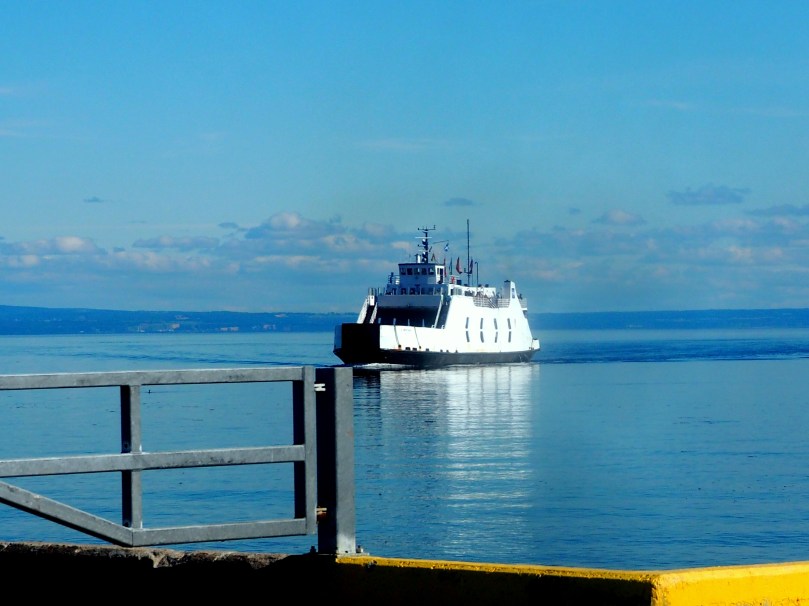 Als wir am Anleger ankommen, sehen wir, dass eine Fähre gerade abgefahren ist und hoffen (wie wir inzwischen wissen) vergebens darauf, dass noch eine zweite von der anderen Seite aus unterwegs ist.
