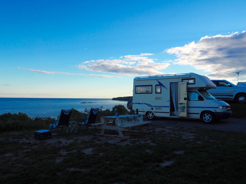 Die Stadt heißt wirklich Trois Pistoles. Wir stehen wieder mal leicht erhöht auf einem extra schönen Plätzchen, ohne Zugverkehr, ohne Highwaygeräusche, ohne nächtliche Rundumbeleuchtung…