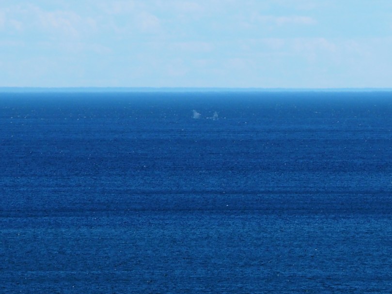 Die Überfahrt ist traumhaft schön. Wale begleiten uns in sicherer Distanz, ihre Atmung zeigt uns ungefähr einmal in zwei Minuten, dass sie da sind…