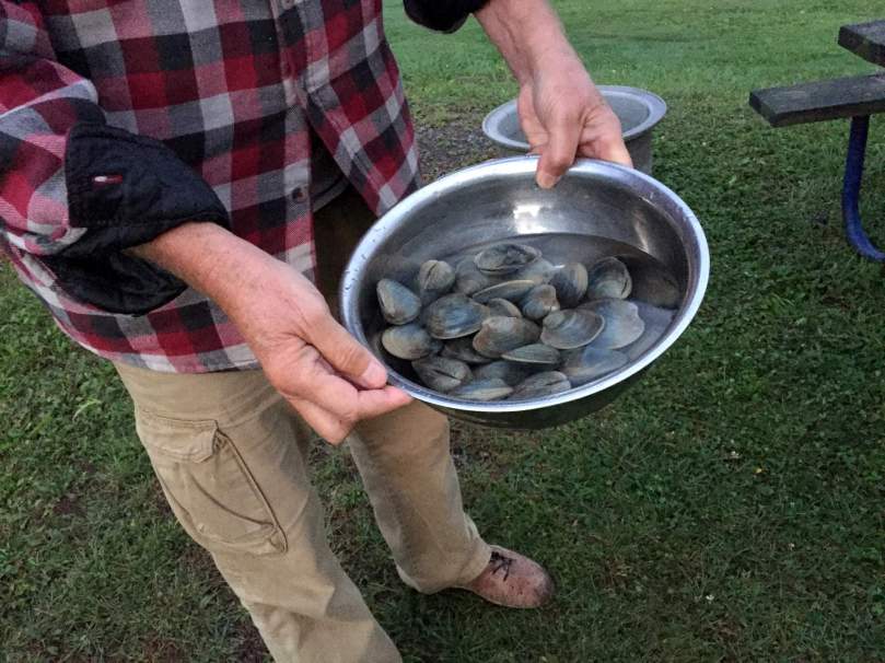 Für kleines Geld stehen wir in Gemeinschaft mit Kanadiern direkt am Ufer, ich spiele Horseshoe und wir bekommen mal wieder etwas geschenkt, diesmal eine frische selbstgesammelte Muschelmahlzeit.