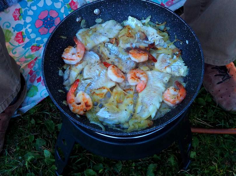 Unser Lunchzubereitungsritual am Außengrill mit der Selbstverständlichkeit: „das erste Glas Wein kommt in den Koch“ ist uns lieb geworden.