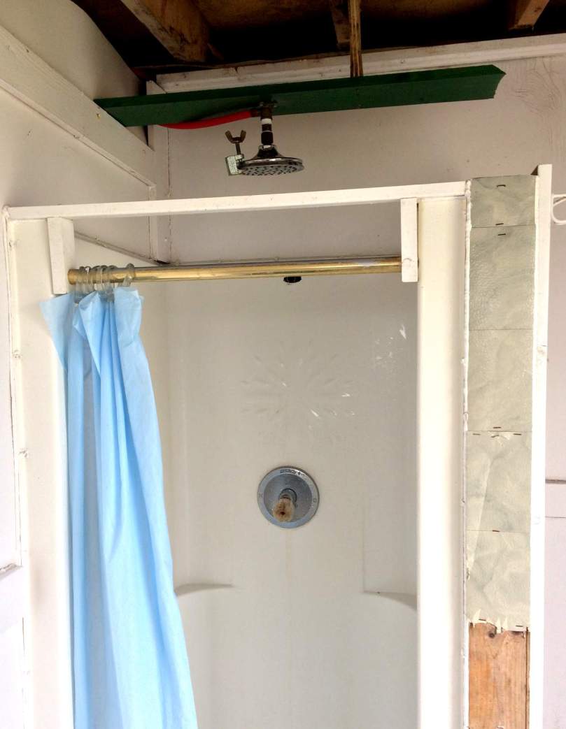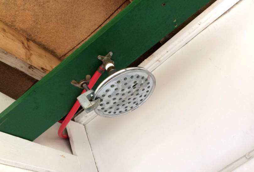 Neben der garbagebox, die Tiere sollen sich erst gar nicht an gehaltvolle Essensreste der Gäste gewöhnen, geht der Weg in die Dusche…