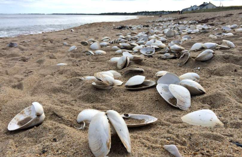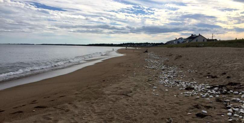 Jetzt nach der sommerlichen Saison wärmt uns dieser menschenentwöhnte, zum  Barfußlaufen auffordernde Strand mit Unendlichhimmel in Blau am Atlantik in Maine mit seinen Riesenmuscheln alle Depri-Gedanken aus der Birne und die Kälte aus den Füßen.