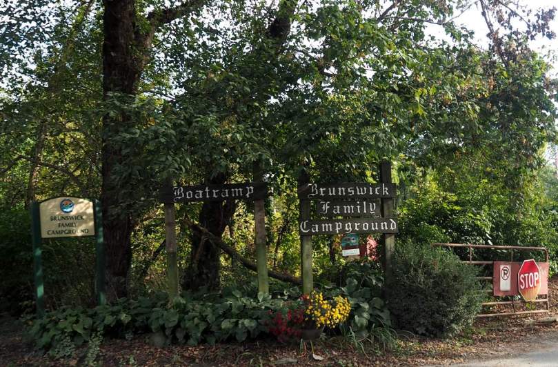Unser nächster Übernachtungsplatz Brunswick Family Campground, mit dem Städtchen Brunswick im Rücken, liegt direkt am nördlichen Flussufer. Wochenende heißt hier: alles besetzt, aber für unser kleines Auto findet sich noch ein Plätzchen, sogar mit „Landstrom“!