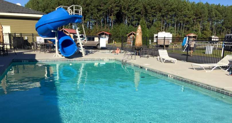 Immer wenn wir uns der von Norden nach Süden verlaufenden Interstate 95 nähern, kommen wir in den Genuss besonderer Übernachtungsplätze. So wie dem RV Resort at Carolina Crossroad, Roanke Rapids North Carolina