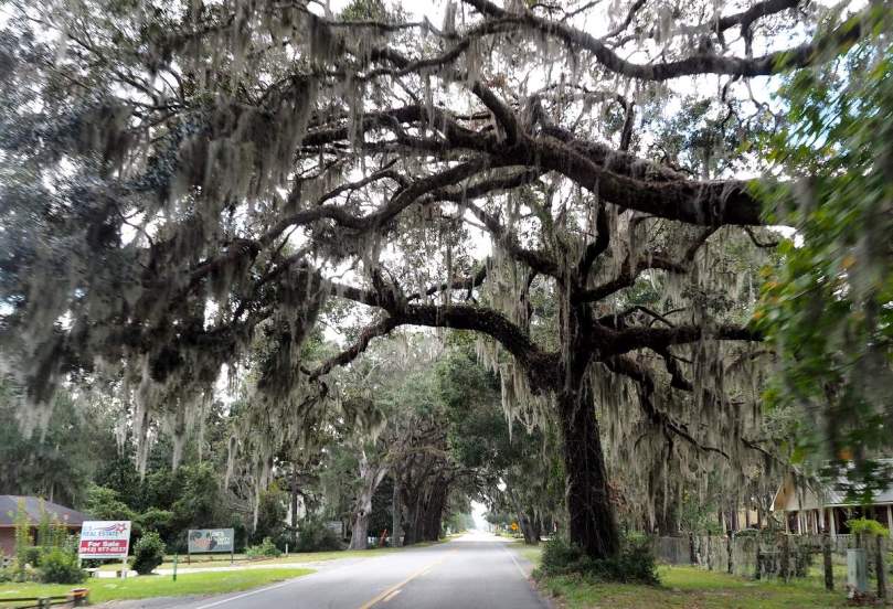Spanish moss begleitet uns als eines der wesentlichen Pflanzen der südlichen Ostküste. Es macht aus jeder Straße, die es in den Bäumen überspannt, ein höhlenähnliches Gebilde und gibt uns ein schönes Gefühl einer Behausung.