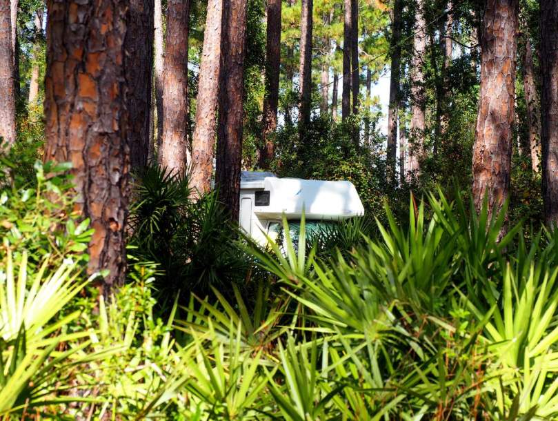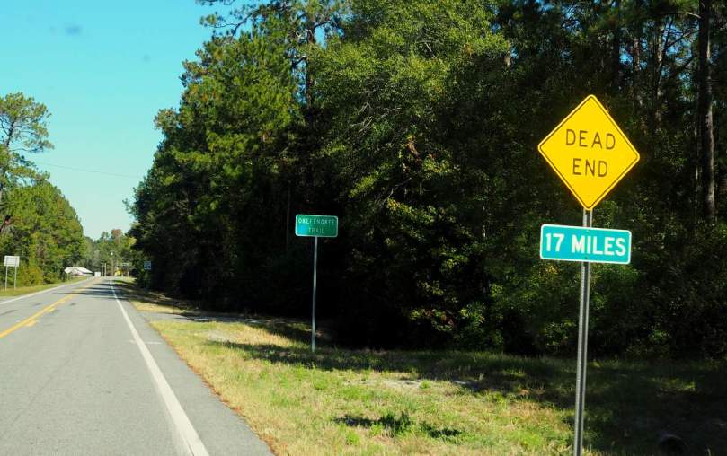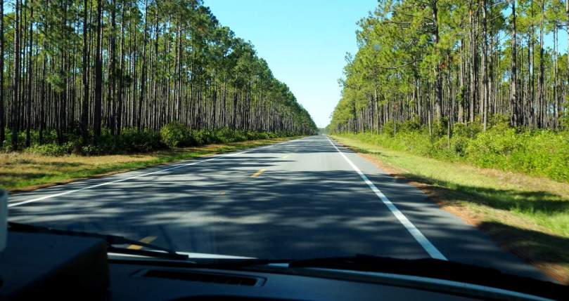 Im Grunde genommen ist dieser Walkabout RV Park nur unser Basislager für zwei Nächte, nämlich von Sonntag auf Montag und anschließend eine Nacht von Donnerstag auf Freitag zwischen denen wir hin und zurück mehr als 360 einsame Kilometer georgianische Pinien- und Sumpflandschaft überwinden wollen.