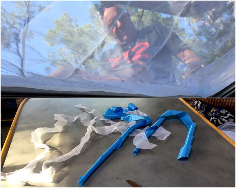 Bevor wir im unendlichen Sumpf bei den mosquitos ankommen, müssen noch unbedingt alle Fenster insektendicht gemacht werden. Dazu sind die jetzt schon vorhandenen Rollos nicht kleinmaschig genug.