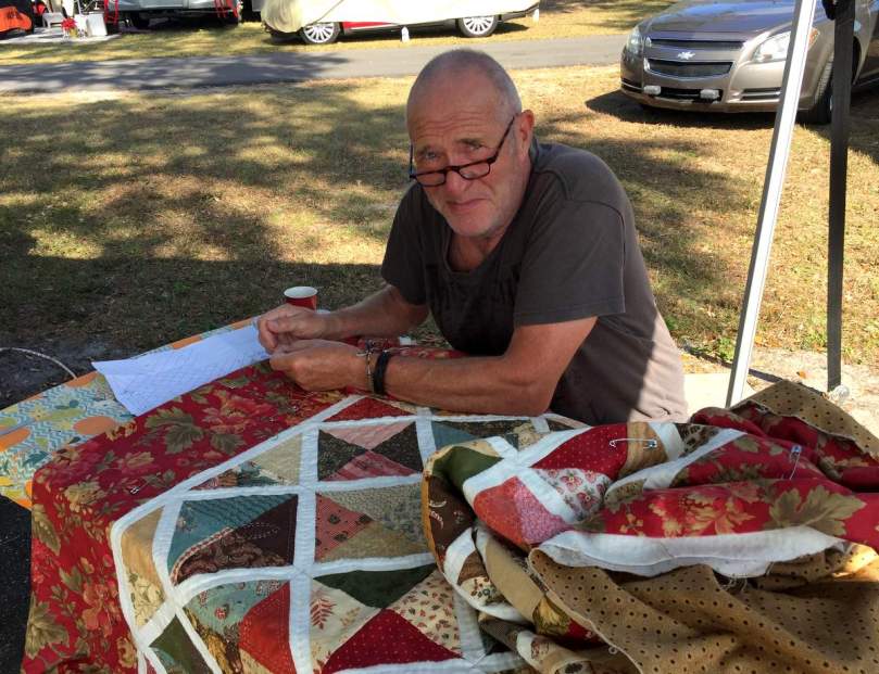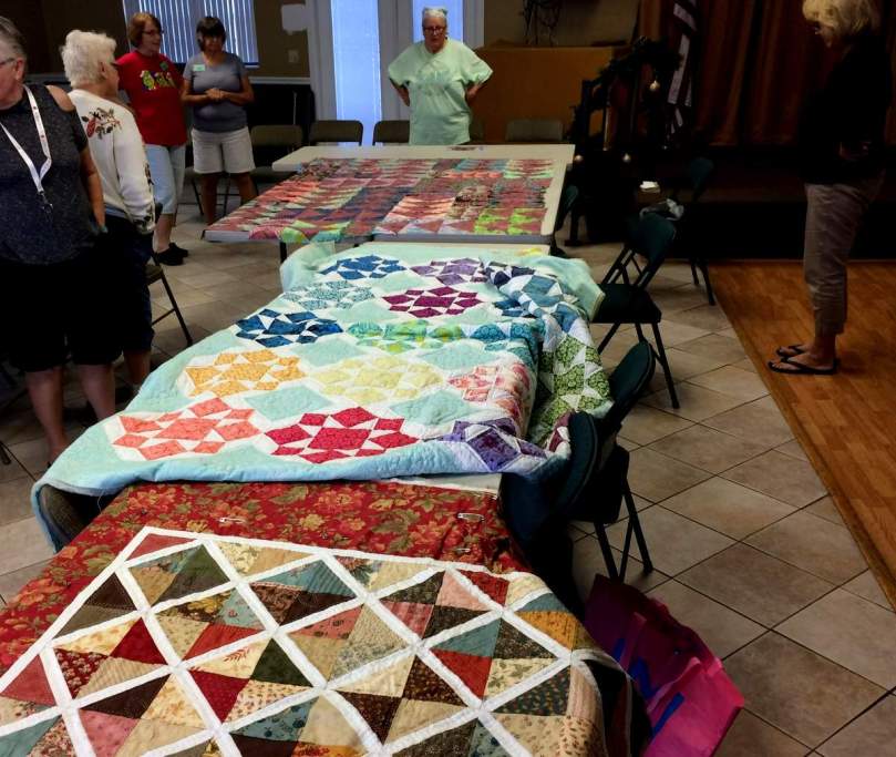 Die Quiltgruppe im Clubhaus will gerne immer wieder sehen, was Vero während unserer Reise alles so per Hand geschnitten, genäht, gequiltet zustande gebracht hat. Sie können es als geübte Maschinenquilterinnen kaum glauben!