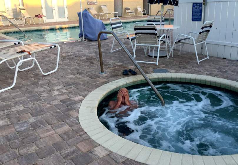 Also machen wir’s uns weiterhin gemütlich im 40-45ºC heißen HotTube und anschließend im 25-28ºC warmen Swimmingpool.