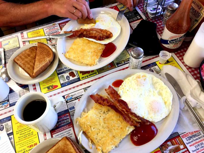 Wir brauchen dringend: „Three eggs, bacon, hashbrowns, toast and coffeeee!“: „How do you like your eggs?“ – „over medium!“ – „me too“ – „What kind of toast?“ – „white“ – „and for me wheat!“