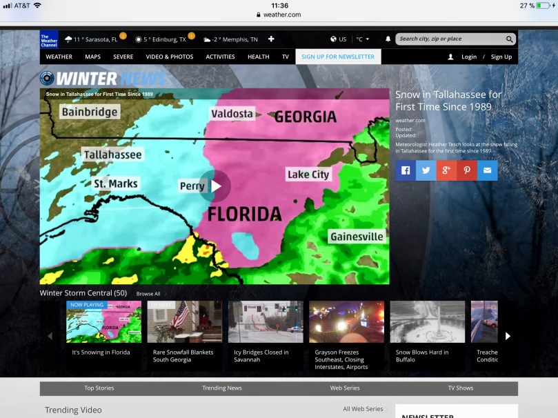 Auch die bisher langfristige Wettervorhersage bestätigt sich. Es ist nicht nur in den nördlichen und östlichen Staaten der USA kalt, sondern es erwischt uns unerwarteterweise selbst hier in Florida.