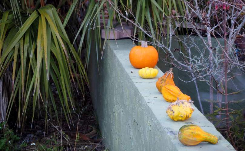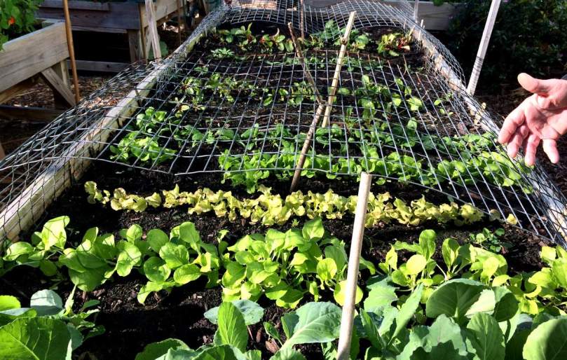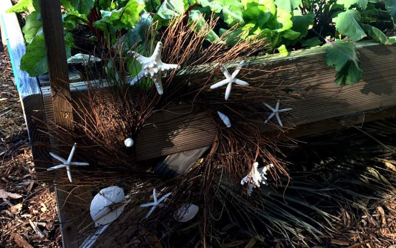 Genial angelegte, die Sonne und das hiesige Klima aufs Beste nutzende Pflanzen geben in den selbst gebauten Hochbeeten, die Insel-Erde unterhalb ist zu sandhaltig, innerhalb kürzester Zeit, fünf- bis sechsmal im Jahr ihren Früchten oder Blüten Gelegenheit sich ernten zu lassen.