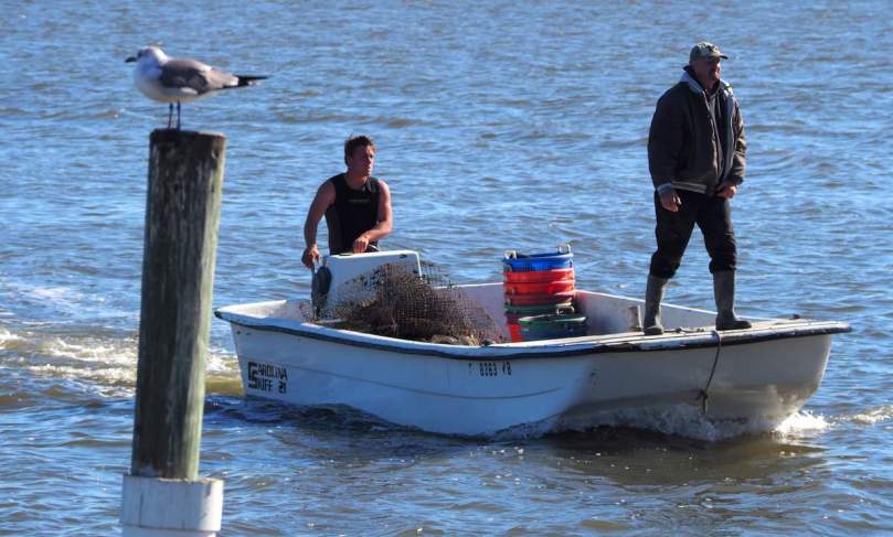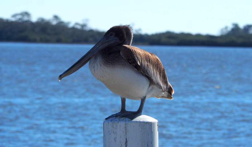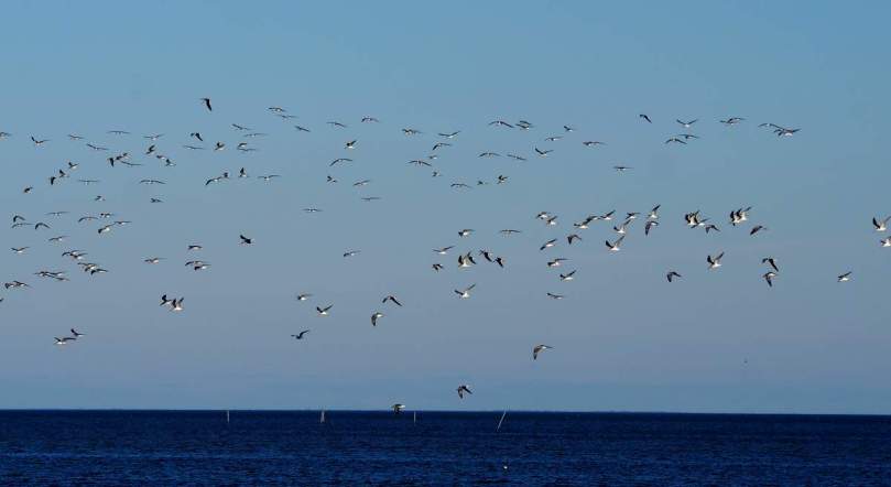 und sind jetzt unterwegs „auf die Insel“. Mehrere, kurz hintereinander durch Sandbänke unterbrochene Brücken bringen uns hinüber. Schließlich landen wir auf dem großzügigen Parkplatz an der boat ramp, wo die meisten Fahrzeuge mit ihren Trailern abgestellt sind.