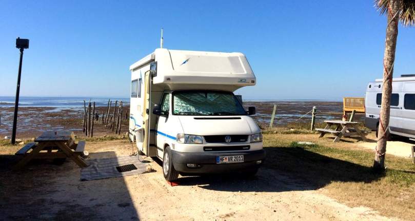 Aus einem Tag zwischen mehreren anderen RV’s werden letztendlich NEUN, denn mit der unverhofften Chance direkt ans Wasser umziehen zu können , steigert sich jeden Tag aufs Neue das Gefühl, die Welt gehöre uns ganz allein.