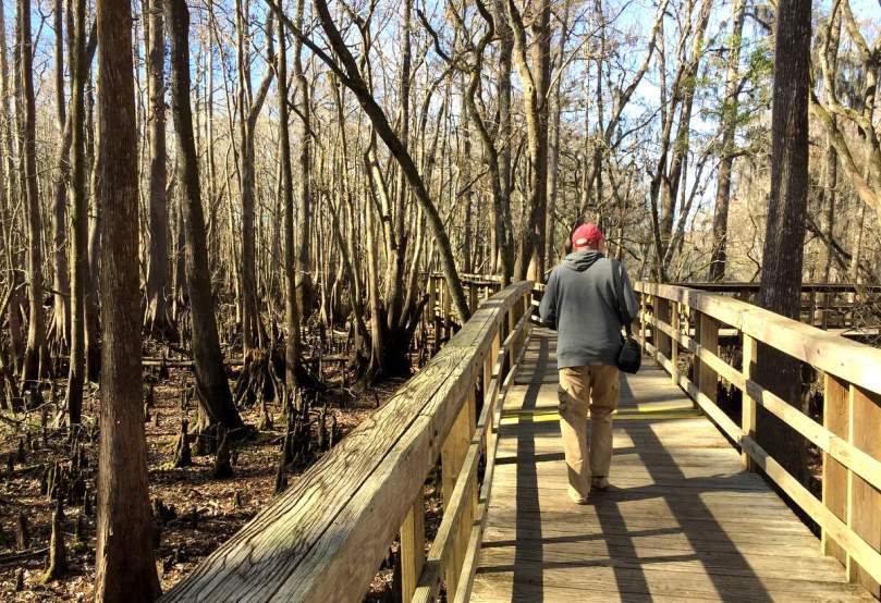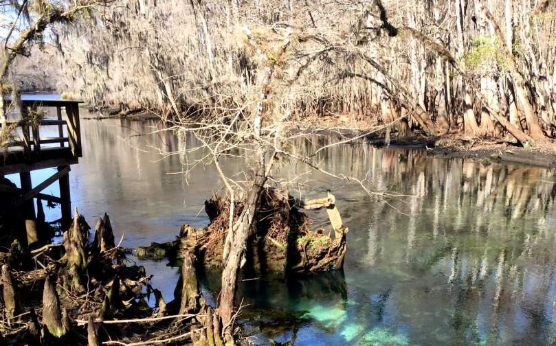 Der Weg zu den Quellen, den Manatees und anderen für uns eher ungewohnten Tieren, führt über den boardwalk. Er bietet uns verschlungene Wege durch oder besser über dem Swamp, deshalb ohne nasse Füße, wie klar das Wasser hier ist: „mach nicht so einen Krach!“ und darüber hinaus außergewöhnliche Nähe zu der originären Welt der Tiere und Pflanzen, die hier, wir müssen uns den engen Regeln, denen Besucherinnen und Besucher unterworfen werden, im Mittelpunkt stehen.