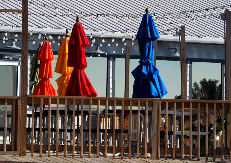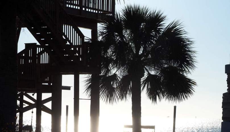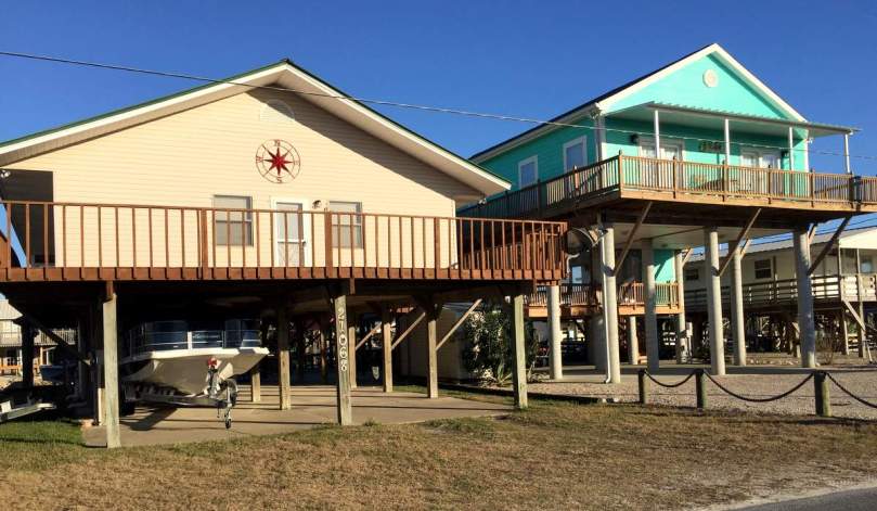 Die ungewöhnlichen Häuser auf dem Weg dorthin und wieder zurück zeigen beeindruckend, dass der Friede, den wir hier empfinden, nicht immer so friedlich ist, sondern sich manchmal offensichtlich als sehr realistische, menschenbedrohende Hochwasser und Hurrikans, vom letzten wurde das Bathhouse des Campgrounds weggefegt, wenn’s gut geht, nur als Störenfriede zeigen.